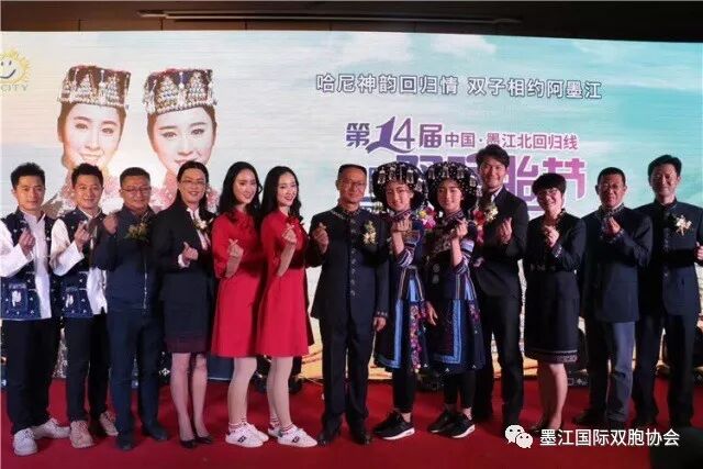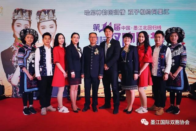 中共墨江县委副书记杨学荣、形象代言人、墨江双胞胎代表共同“启动”第十四届墨江国际双胞胎节
