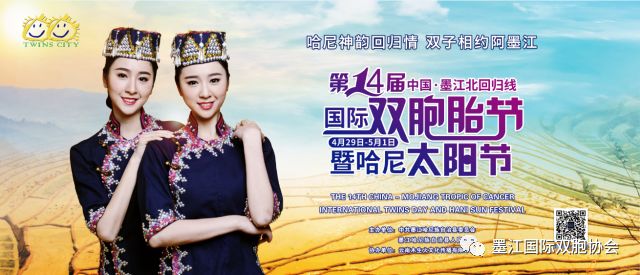 作为云南省重点打造的民族节庆,第十四届中国·墨江北回归线国际双胞胎节暨哈尼太阳节以“哈尼神韵回归情、双子相约阿墨江”为主题,通过传承弘扬北回归线上的地域文化,尽情展现哈尼风情、地理特性及双胞魅力,活动更具参与性、狂欢性。今年活动邀请了靓丽双胞姐妹花杜雪琪、赵冰晶担任形象大使,并诚邀世界各地不同肤色、不同民族双胞参与活动,届时,近千对双胞将欢聚墨江,共庆盛会。主题经典活动双胞联欢晚会、双子星才艺大赛、双胞长街宴、双胞风情大巡游、双胞联谊等融时尚与潮流一体,引爆您的视觉视听盛宴,带您体验不一样的双生世界。独具地域文化特色的哈尼秘境婚礼、哈尼抹黑脸、哈尼划拳大赛及民族民间文艺展演、万人篝火狂欢等将多领域、多形态呈现北回归线上的哈尼风情,等您慢慢品味。