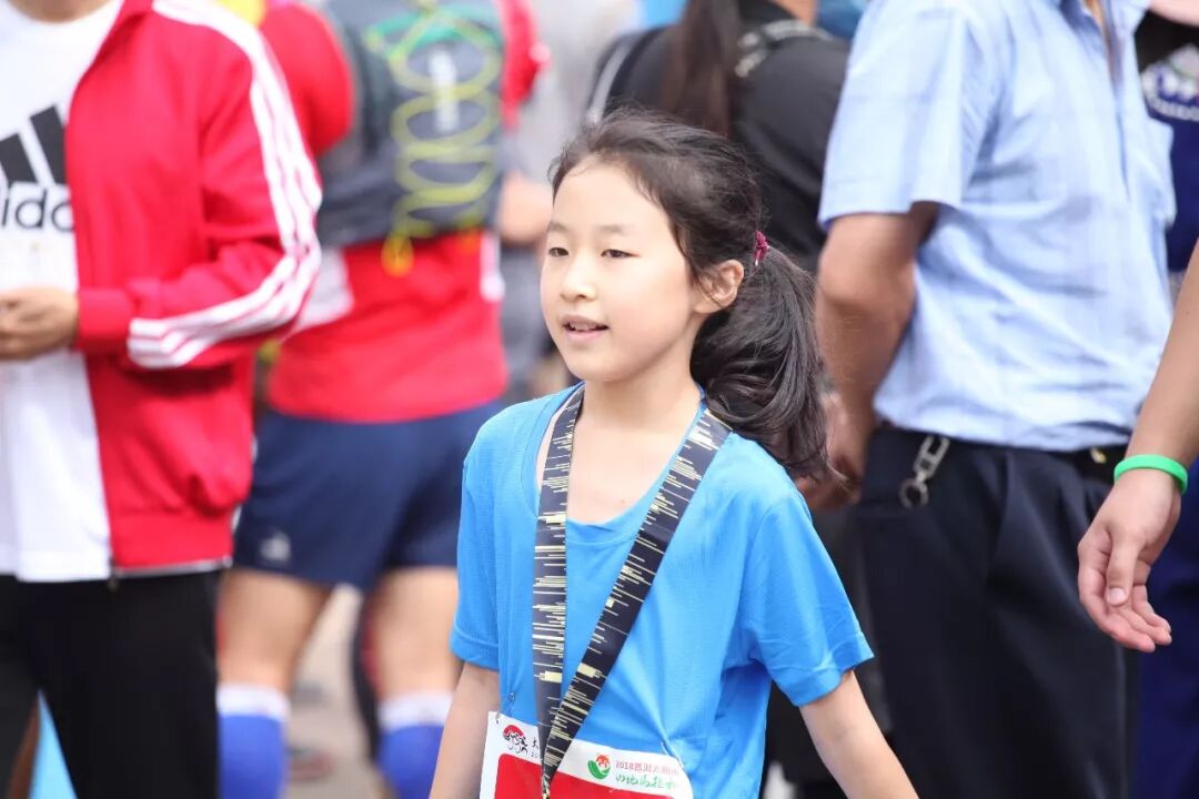 小女孩9岁,爸爸陪同跑完12公里,结束后精神状态非常好,平时喜欢与爸爸一起运动,对她来说今天的比赛比较轻松。