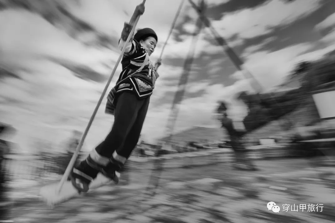 如果赶上节庆,哈尼族的男女老少,还会聚在一起,荡秋千。哈尼族人认为秋千是传递天地人神的中介,也是对先祖采摘果实方式的纪念。如今哈尼族人的秋千,颇有些“月老”的感觉,如果有哪个哈尼小伙的秋千荡的高,就会收到哈尼姑娘的青睐,把他当成心目中的英雄。
