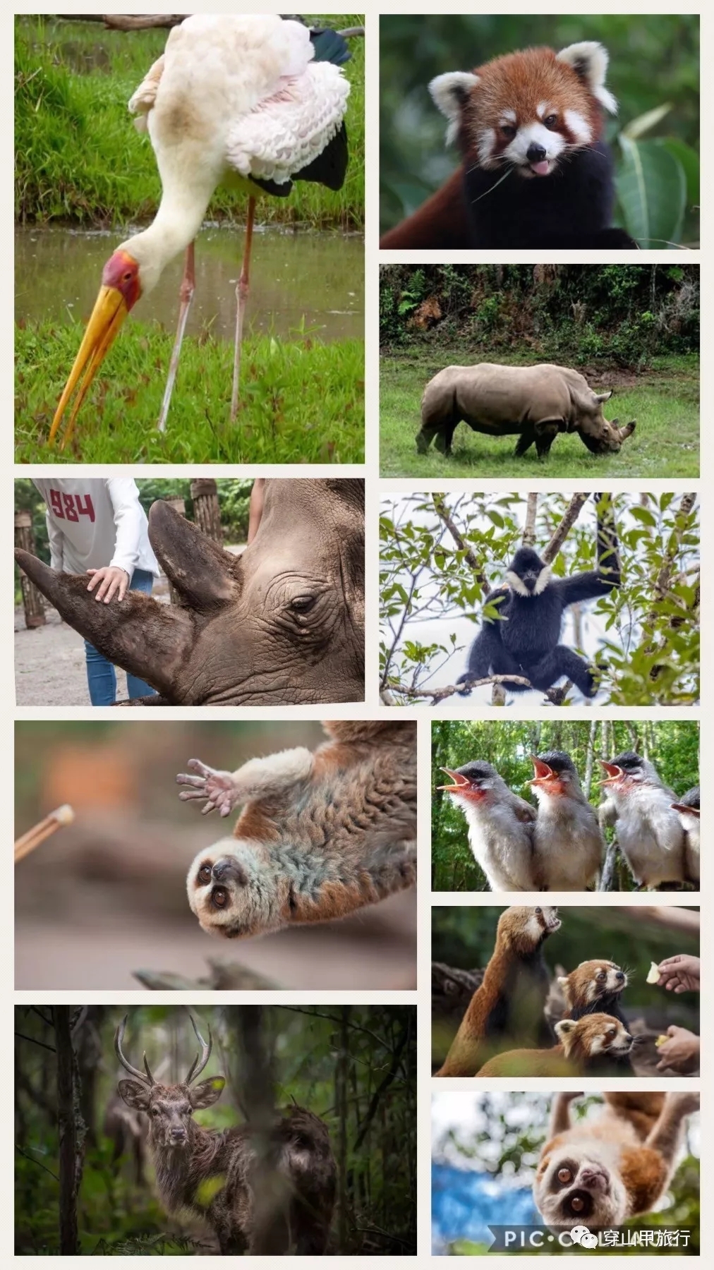 森林深处,还有一群超级无敌可爱的朋友:毛茸茸的小熊猫、蜂猴、长臂猿、白鹭,犀牛,以及帅气绅士的鹿……在这里,你可以跟犀牛坪的犀牛来一次近距离的接触,亲手摸摸它厚实的皮肤,坚硬的犀角,知道角对犀牛有多么重要;你还可以亲自给马鹿、小熊猫喂食,说不定,可爱的小熊猫还会抱着你的大腿,求你跟它多玩一会儿。