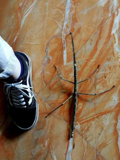 竹节虫是拟态界著名的伪装大师,他们往往栖息在树枝或竹枝上,仿佛一支枯枝或枯竹做到以假乱真。更有意思的是有些竹节虫在受到惊吓掉落到地上,它们还能装死一动不动。一般竹节虫的体型在24厘米左右,但在我们普洱太阳河森林公园里就曾发现过一只体型超过30cm的竹节虫,可以看到它们体型已经超过一个成年人的鞋的长度了,实在是惊人!