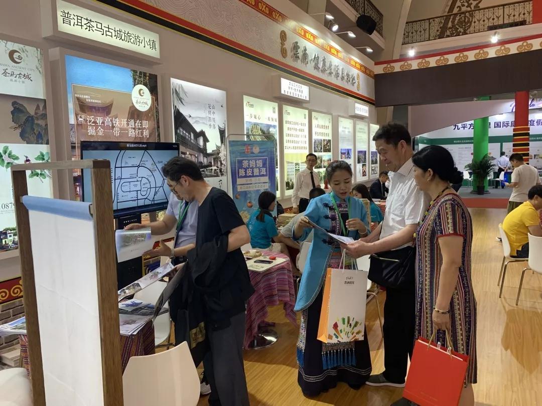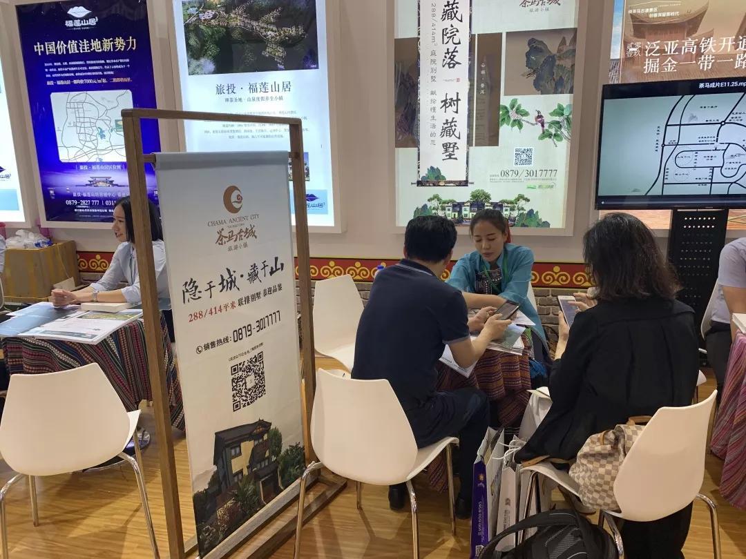 普洱茶马古城旅游小镇作为云南参展代表之一携「庭院别墅」、「十里春风」、「茶马公馆」、「景区旺铺」四大产品亮相本届展会,在现场吸引了较多人的驻足。