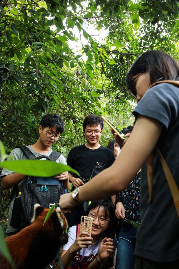 ▲两岸师生与犀牛、小熊猫近距离互动