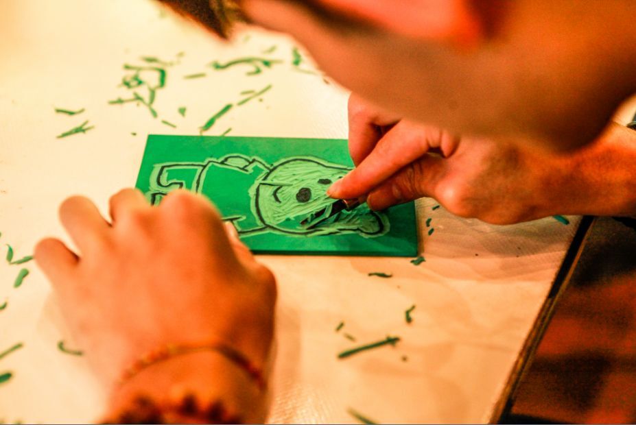 绝版木刻是在普洱地区出现的一种版画创作的新技法,具有极强表现力,收藏价值极高。为让两岸师生能亲身感受绝版木刻的独特魅力,湄公河集团专门邀请了普洱当地绝版木刻的资深老师现场教授,大家都兴趣十足,不断尝试和提问,创作出了一幅幅属于自己的纪念作品。