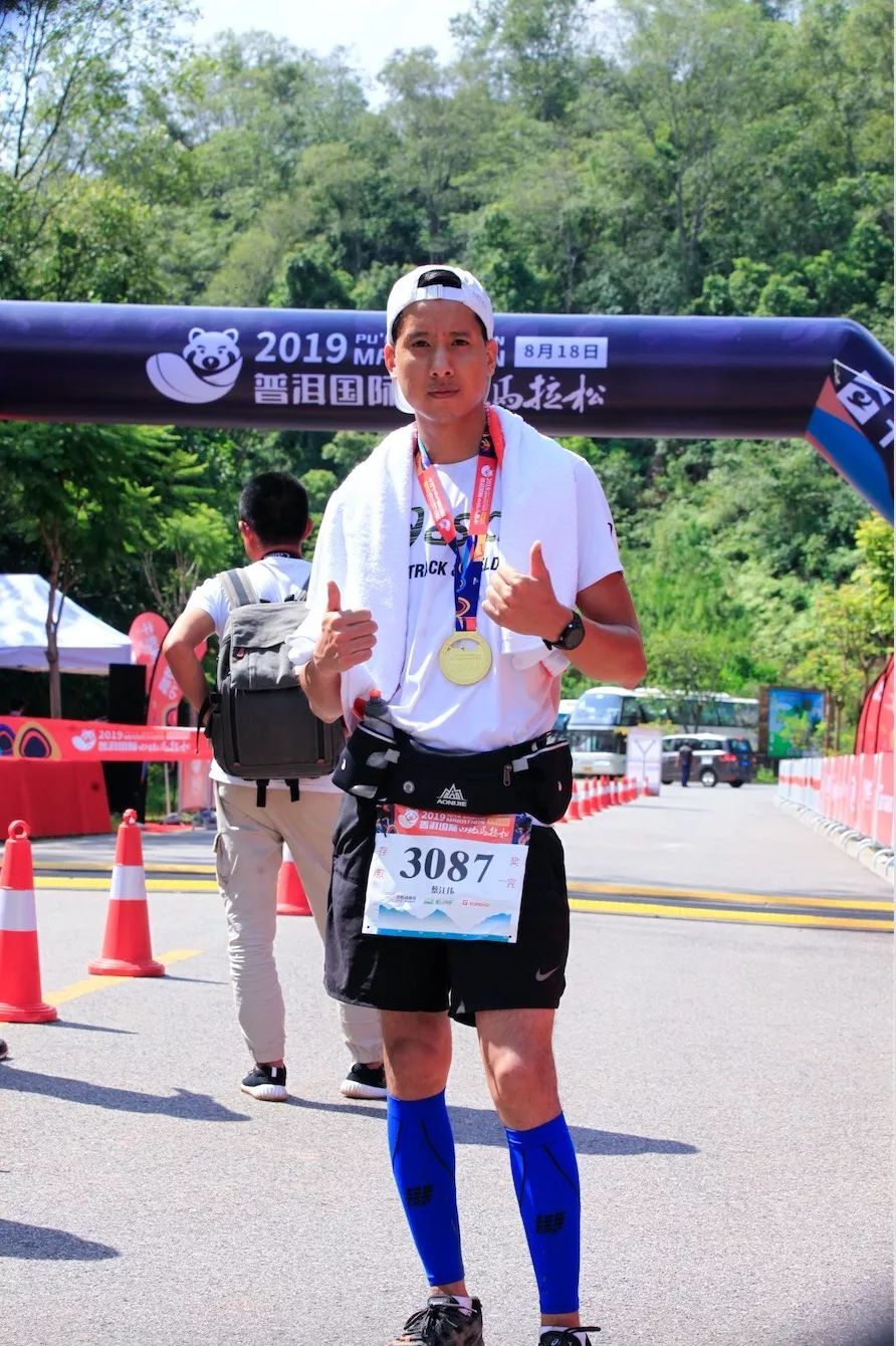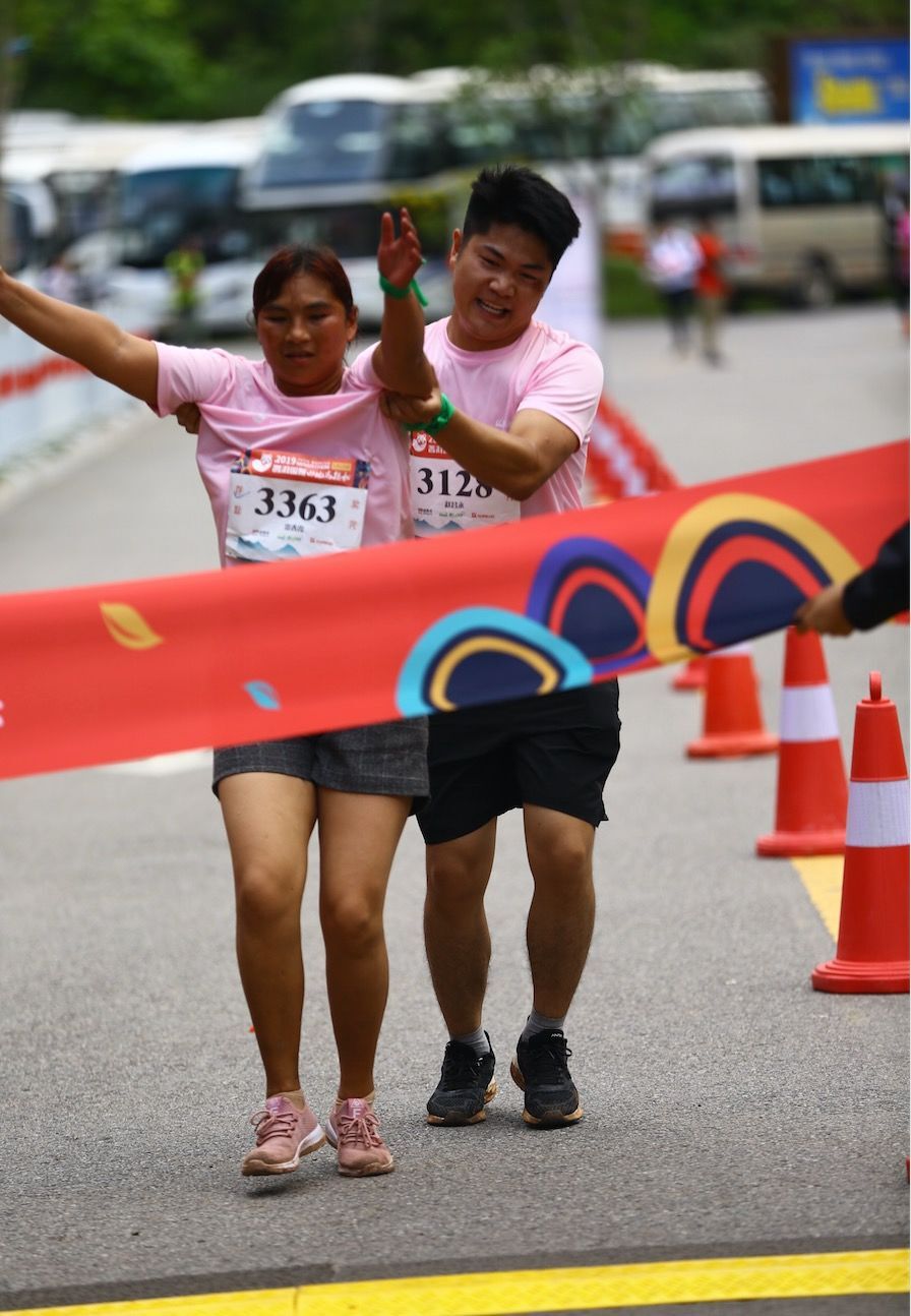 在终点处,各个单位未参赛的同事自发组成啦啦队,翘首以盼每一个归来的英雄。九点三刻刚过,普洱太阳河森林公园张兴宇率先冲线,耗时2小时46分51秒!接着,不断有同事向终点奔来。终点锣鼓声、掌声、呐喊声一浪高过一浪,“啦啦队”们胆大的上前拥抱合照,含蓄的使劲挥动双手致意。随着最后一名同事冲线,参加本次“Mekong精彩·只因有你”湄公河集团2019年普洱太阳河山地马拉松竞赛环节圆满完成,完赛率达到100%,真正做到了不抛弃不放弃!