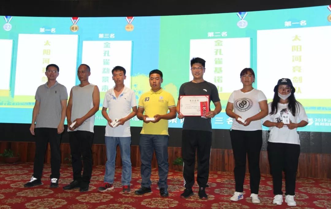 晚宴最激动人心的当属颁奖环节。个人奖方面,今年男子组个人一等奖被普洱太阳河森林公园的同事张兴宇摘得,他同时也是本届整体赛事——普洱2019国际山地马拉松赛30公里男子组亚军,同为普洱太阳河森林公园的查思营,西双版纳基诺山寨景区的座斩获二、三等奖。女子组个人一等奖被来自普洱太阳河森林公园的石钟花收入囊中,西双版纳原始森林公园的张晓艳、普洱金策商业运营管理有限公司的李霞分获二、三等奖。