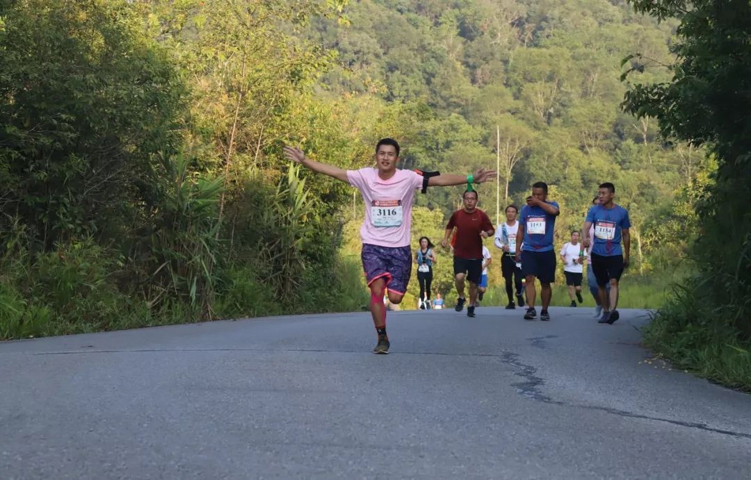 清晨7时,随着全场喊起“十、九、八……三、二、一”的倒计时声,笛鸣清脆,比赛正式开始,选手们奋力地冲出起跑线。大家手缠代表湄公河旅游“绿色旅游”的绿丝带,身穿醒目的参赛服,奔跑在普洱太阳河森林公园里,跑过森林、公路、茶地、农庄,呼吸着负氧离子超高的空气,欣赏着独特的森林+动物景观,肆意挥洒汗水,你追我赶,决不放弃!参赛的选手互相鼓励、扶持,负责后勤的同事沿途给选手加油打气。
