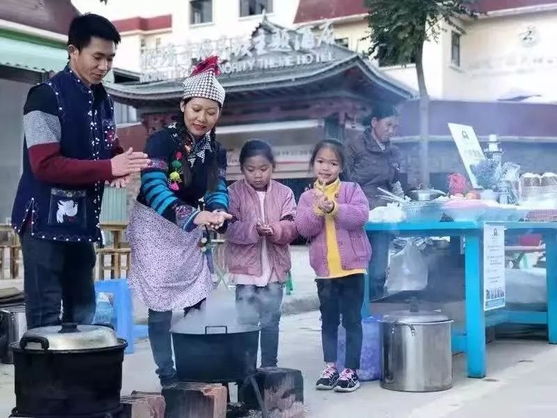 热情好客的哈尼族人民在冬至这天为大家准备了香甜紫米汤圆、生态牛肉汤锅、哈尼地道烤肉。