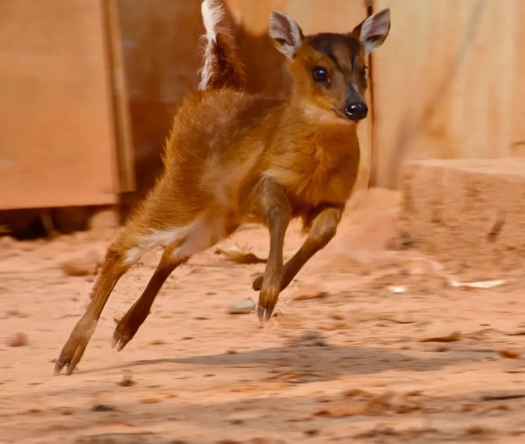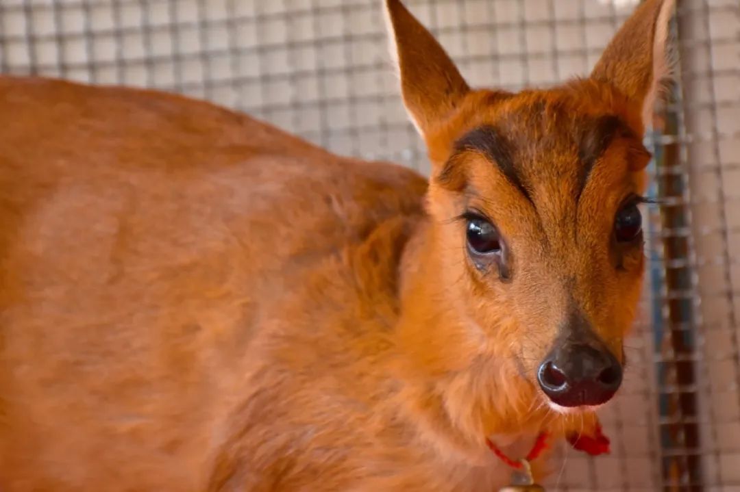 在定波湖畔,刚满月的小初八睁着大眼睛,好奇的看着围观的人群。一位老人家感慨地对他的小孙子说“这个我们叫做麂子,爷爷小时候在思茅的林子里还能遇着,它的胆子特别小,远远听到点动静就跑了,只能看到白色的尾巴,爷爷倒有四十多年没见到过麂子了。”