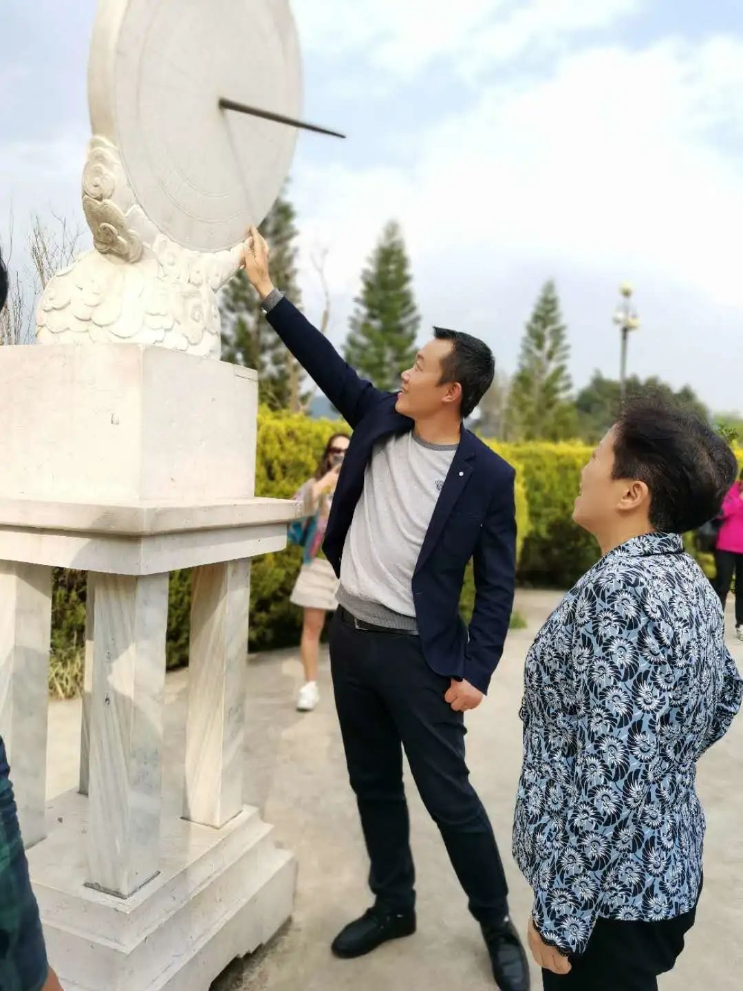 在景区游览道上,督查组一行体验了北回归线上的回音壁、用赤道式日晷计算了墨江当地的真太阳时,以及听取了夏至时节立竿无影的天文奇观介绍。