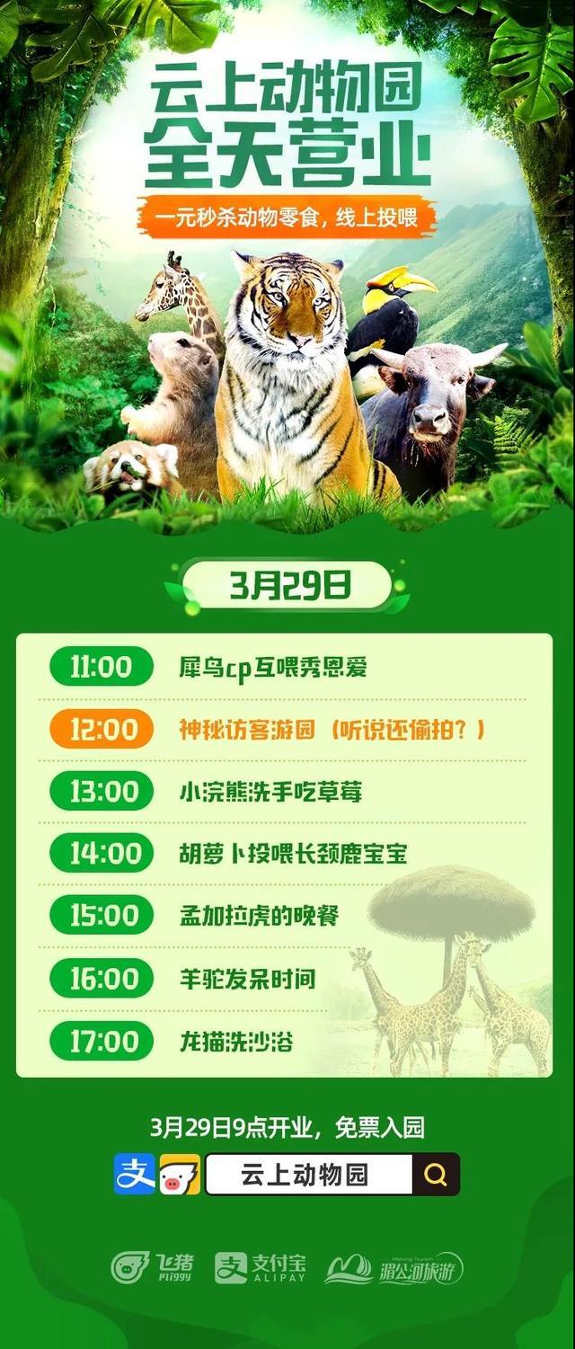 由飞猪、支付宝、阿里云、湄公河旅游联合发布的“湄公河旅游·云上动物园”直播活动即将于3月29日在飞猪上火热开播。本次“湄公河旅游·云上动物园”直播活动聚合了目前最主流的三类动物主题公园形式,以旅游+直播+游戏的前瞻方式,向人们展示了未来最潮的“云撸动物”新玩法。
