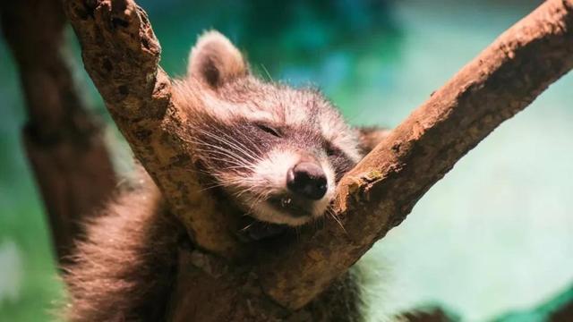 ▲MY ZOO萌宠科普乐园里正在睡觉的浣熊