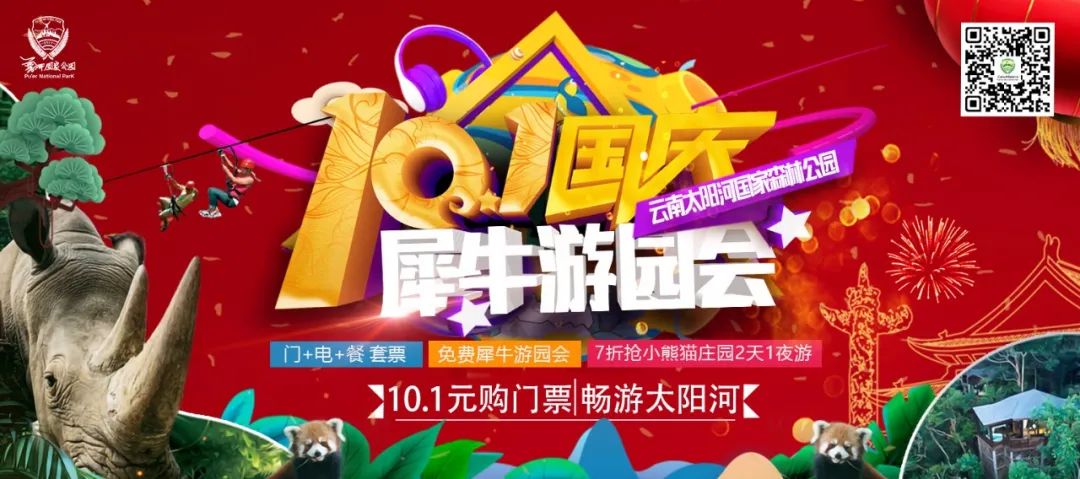 国庆7天,游览云南太阳河国家森林公园,不仅能看到众多的野生动物,与它们互动;还能参与趣味游戏,小熊猫庄园下午茶、飞越丛林体验、犀牛互动券等诱人奖品拿到手软;另外,还有森林音乐会、生物多样性昆虫植物展览,让您的国庆假期丰富多彩!