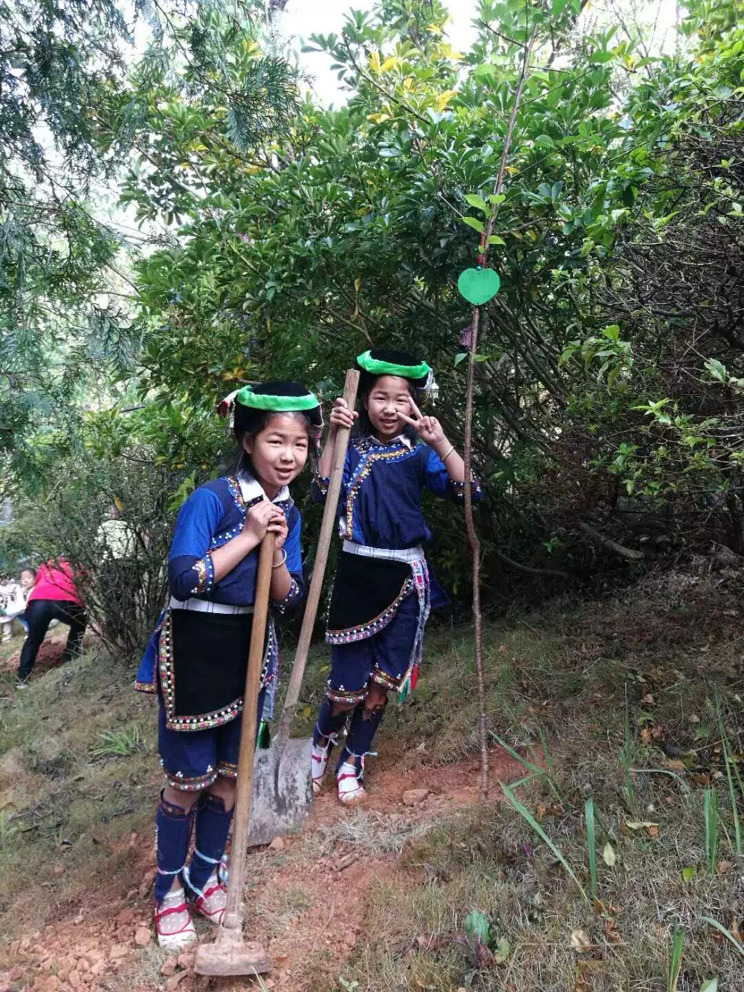 来自墨江当地的双胞胎大双小双告诉我们:这是他们第二次参加植树节了,看着之前种的树现在已经枝繁叶茂,心里有种说不出的感觉,很奇妙。他们也希望能够带动公众,保护环境,健康生活。
