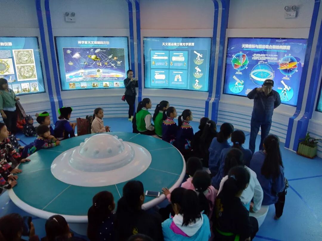 此次活动我们还邀请到了云南天文爱好者协会的三位老师,带大家参观了墨江天文馆,观看天象厅科普宣传片,仿佛有置身宇宙的感觉。老师们还细心的为大家讲解了“滇南第一镜”的操作方式,大家有机会亲手操作这个庞然大物!
