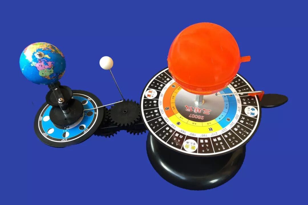 这是一个解释太阳、月球、地球,三者之间关系的仪器。形象生动的阐述了日食,月食等自然景象。