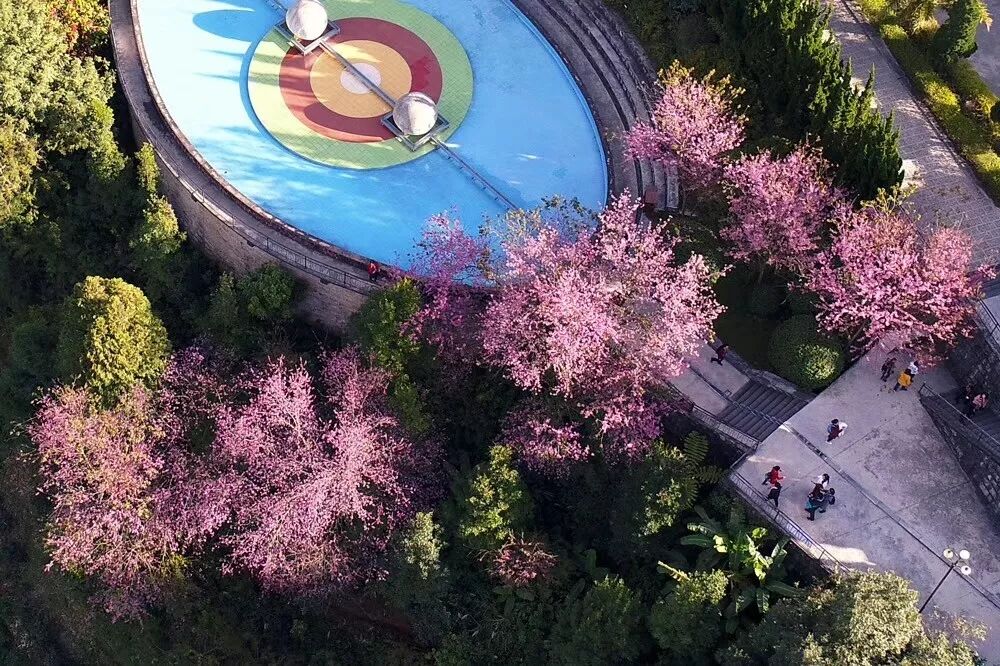 北回归线上盛放的樱花,成墨江粉红色亮丽冬景