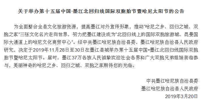 绕过了双胞节,绕不过的小城墨江,这里是哈尼之乡、回归之城,双胞之家,期待您的到来。
