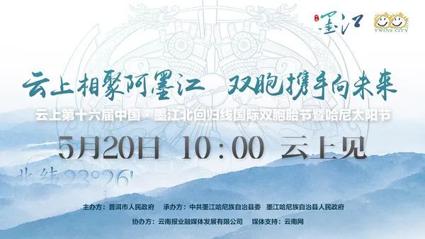 云上第十六届中国墨江北回归线国际双胞胎节暨哈尼太阳节网络新闻发布会将于2022年5月20日盛大开启,云南网将进行全程直播,敬请期待!