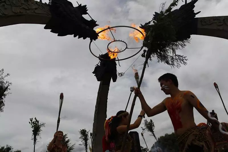 6月21日12:30—14:00墨江北回归线标志园哈尼取火台取“太阳圣火”仪式,用哈尼族传统方式取“太阳圣火”并保留火种,祈祷来年的风调雨顺,延续香火。