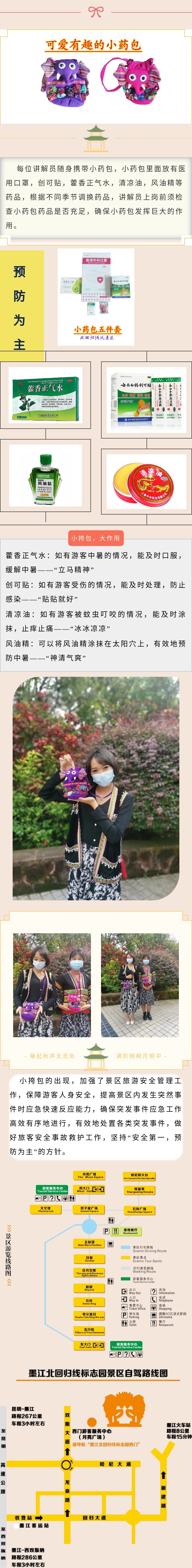 面对旅游业不断复苏,墨江北回归线标志园景区每天都接待着大量不同层次、不同年龄结构的游客,特别是暑期以来,出行游客中老人、小孩较多,为进一步提升我景区接待水平,提高游客服务质量,树立良好的景区形象,景区全面完善软硬件配套设施,给游客提供安全、优质、便捷的景区服务,为此景区给每位讲解员都配备了“应急小药包”。