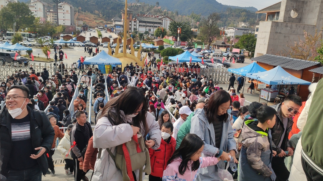 春节期间,公众旅游需求集中释放,出游热情高涨,假日旅游市场保持高位运行。景区各处人头攒动,人声鼎沸,你来我往,为兔年节日增添了热闹的气氛。