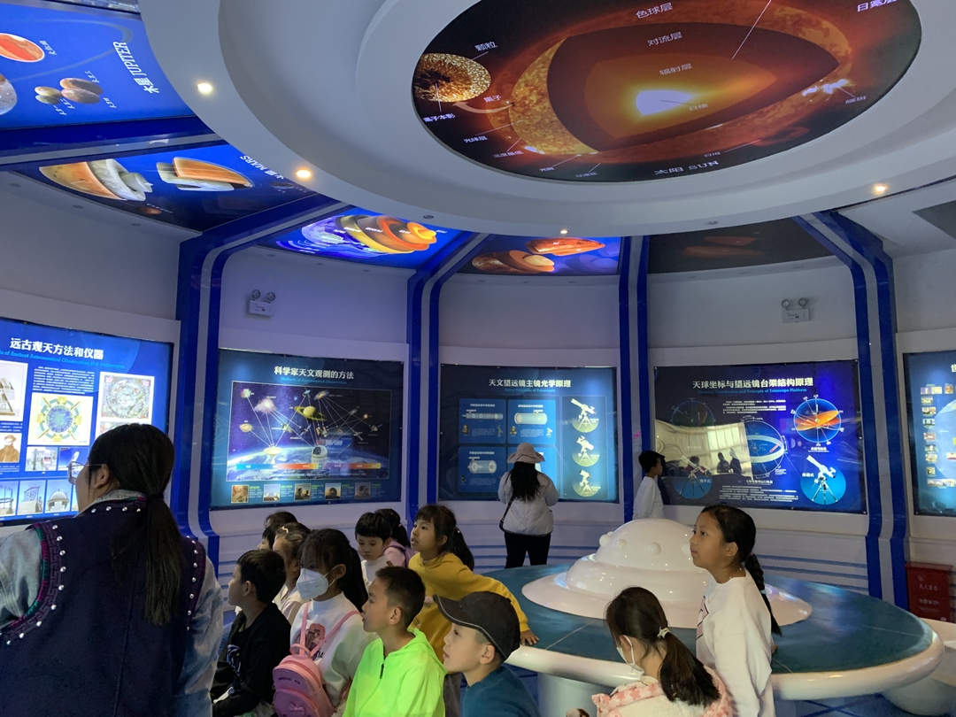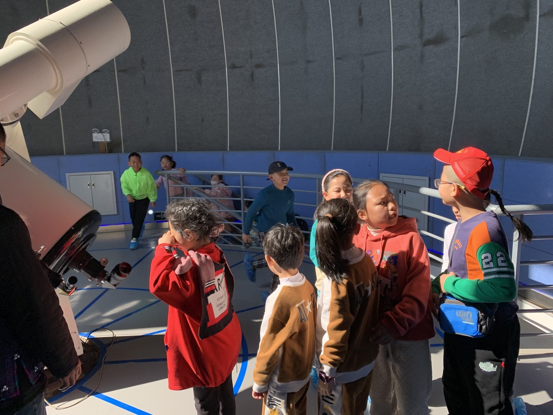 在天文馆内,为孩子们开展了丰富多彩的天文主题教学活动,认识了各大星系,太阳黑子活动。做到了在玩中学,学中玩,身心合一,身体力行的学习模式。