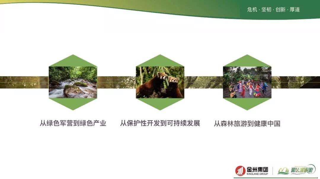 当前,金洲集团两大产业迎来蓬勃发展的新起点。制造业从管道转向新材料、新技术的高科技产业,旅游业从传统旅游转向休闲度假、森林康养。俞锦方董事长以《三十八年坚守一个“梦”》为题,阐述了从绿色军营到绿色产业、从保护性开发到可持续发展、从森林旅游到健康中国的个人与企业发展历程——每次转型,都是思考国家的需要进行的选择。