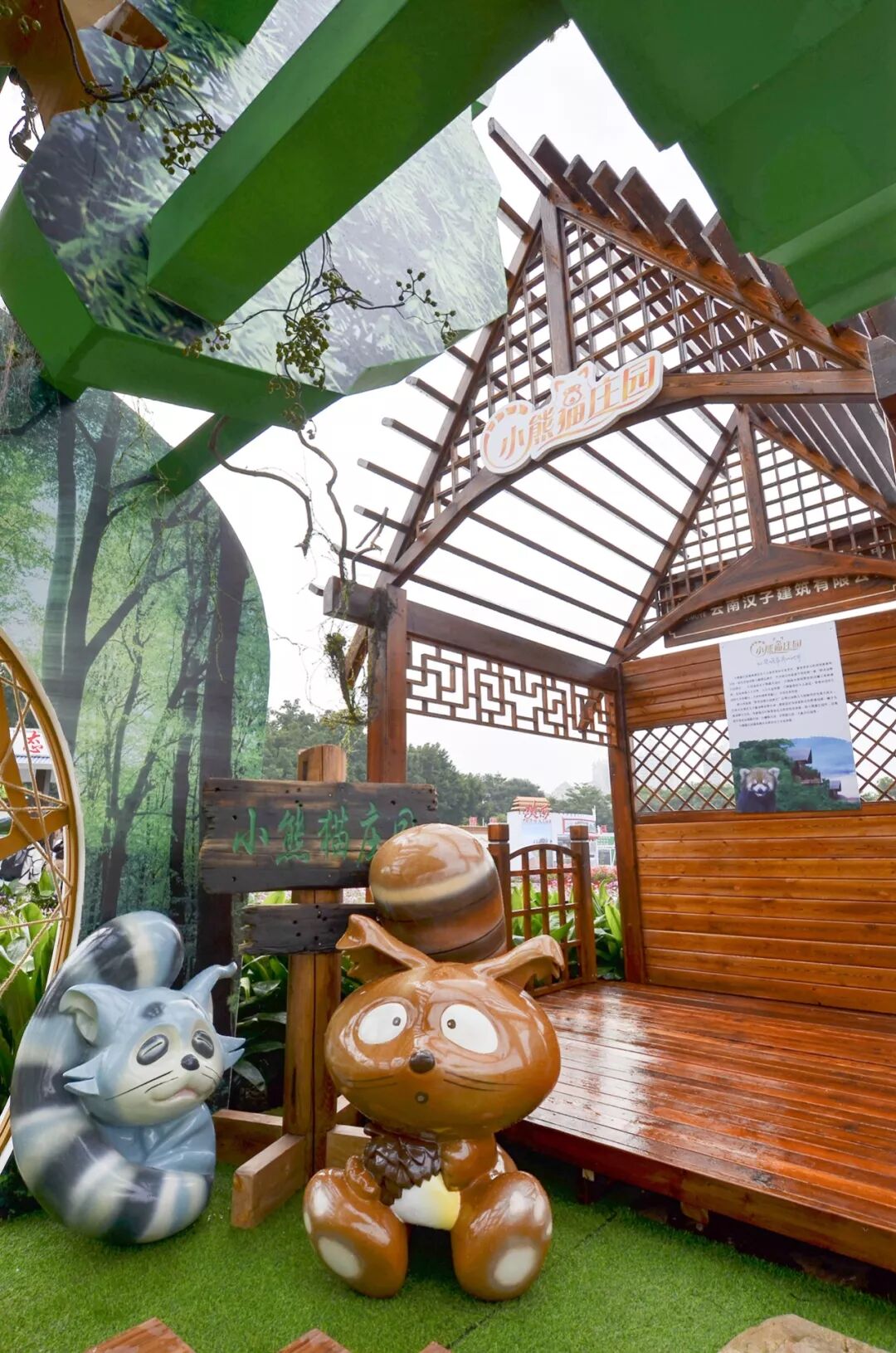 汉子木业在本次展览中呈现了“小熊猫庄园森林酒店”。汉子木业融合木屋元素并加入艺术创意,用“搭积木”的方式将卯榫结构的木头巧妙组合形成镂空木屋,呈现了小熊猫庄园与自然相融的特色,展现了汉子木业在木结构房屋领域的艺术理念与精湛技艺。