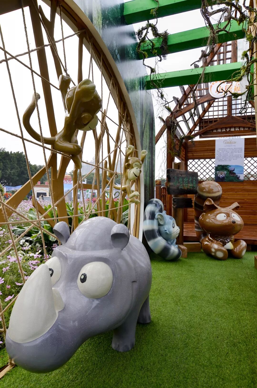 本次展馆由夏岩集团设计并承建仿真森林景观。流畅现代的白色围墙与墙内森林景观互借景致,呈现出若隐还现的唯美姿态;真假难辨的森林、山石,穿越林区的拱桥,藤蔓掩映的攀爬网,奇花异草,珍奇异兽,有序的组织在森林场景中;艺术与写实结合的“长颈鹿”“犀牛”“小熊猫”“猕猴”神色姿态分明的“生活”在森林里,为层次丰富的森林增添了生命活力。夏岩集团对展区的创意设计与森林景观呈现,展现了空间艺术与仿真景观打造的领先水平。