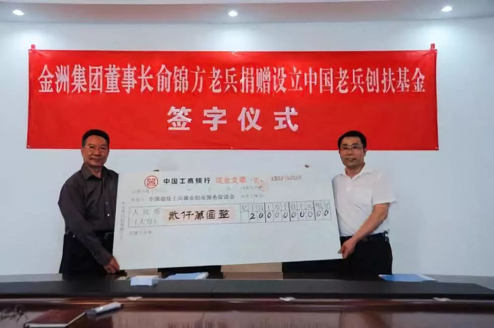 俞锦方董事长向中国老兵创扶基金捐赠签字仪式