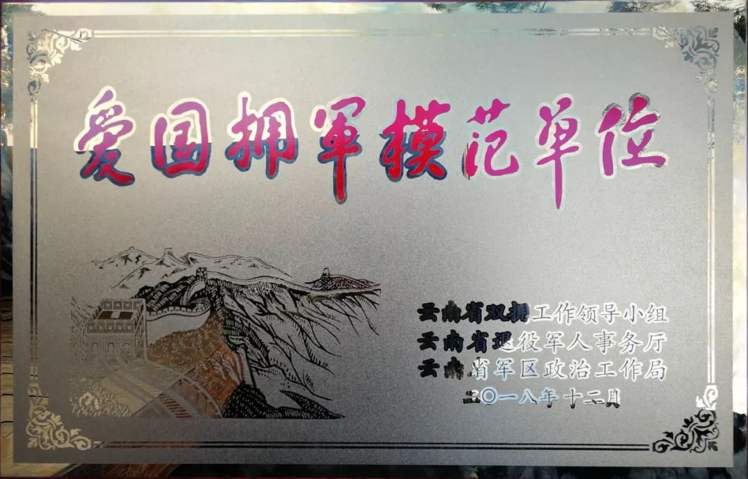 公司荣获云南省第十届双拥模范“爱国拥军模范单位”称号