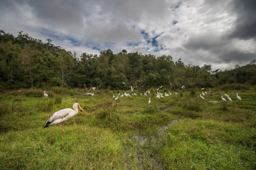 如今的茭瓜塘又恢复了老李儿时的模样,甚至比当时还要生态和谐。这是普洱太阳河森林公园多年来持续进行茭瓜塘湿地恢复计划的成果。通过人为的干预和保护,使这里成为涉禽类动物的长期栖息地。