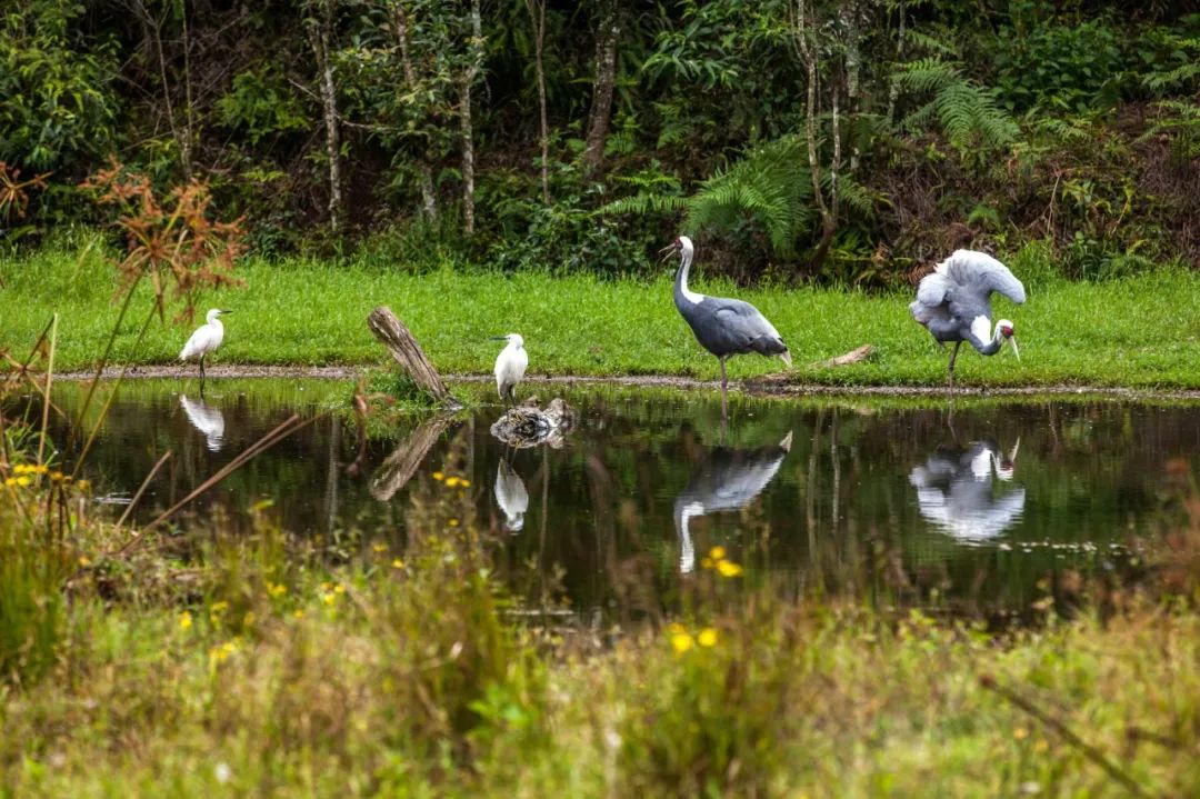 如今的茭瓜塘又恢复了老李儿时的模样,甚至比当时还要生态和谐。这是普洱太阳河森林公园多年来持续进行茭瓜塘湿地恢复计划的成果。通过人为的干预和保护,使这里成为涉禽类动物的长期栖息地。