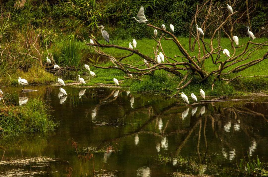 “白鹭鸶又飞回来了!”家住普洱太阳河森林公园附近的村民老李高兴地说到。眼前郁郁葱葱的湿地位于太阳河森林公园茭瓜塘,老李儿时常跟伙伴们一起在这里嬉戏,“小孩儿们光着胳膊赤着脚,就往湿地里跑。冰冰凉的水清澈干净,还有鱼儿不时从脚边溜过。湿地中间有一棵大树,上面歇满了羽毛长长的鸟儿,一到冬天,还有一些不知名的候鸟从北边飞来。”老李回想起当年依然记忆犹新。