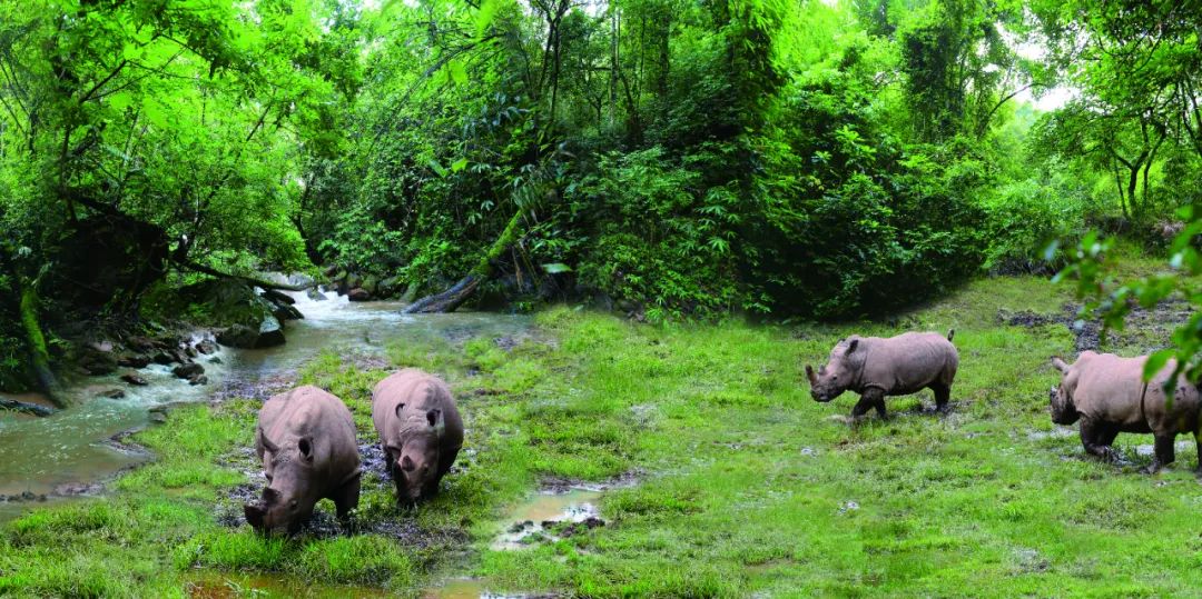 游客们在游览时可以在茭瓜塘湿地接力取水运送到园内的犀牛大平台,为犀牛洗浴池加水。一起来给“巴布鲁”洗一个快乐的泥巴浴。