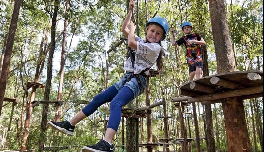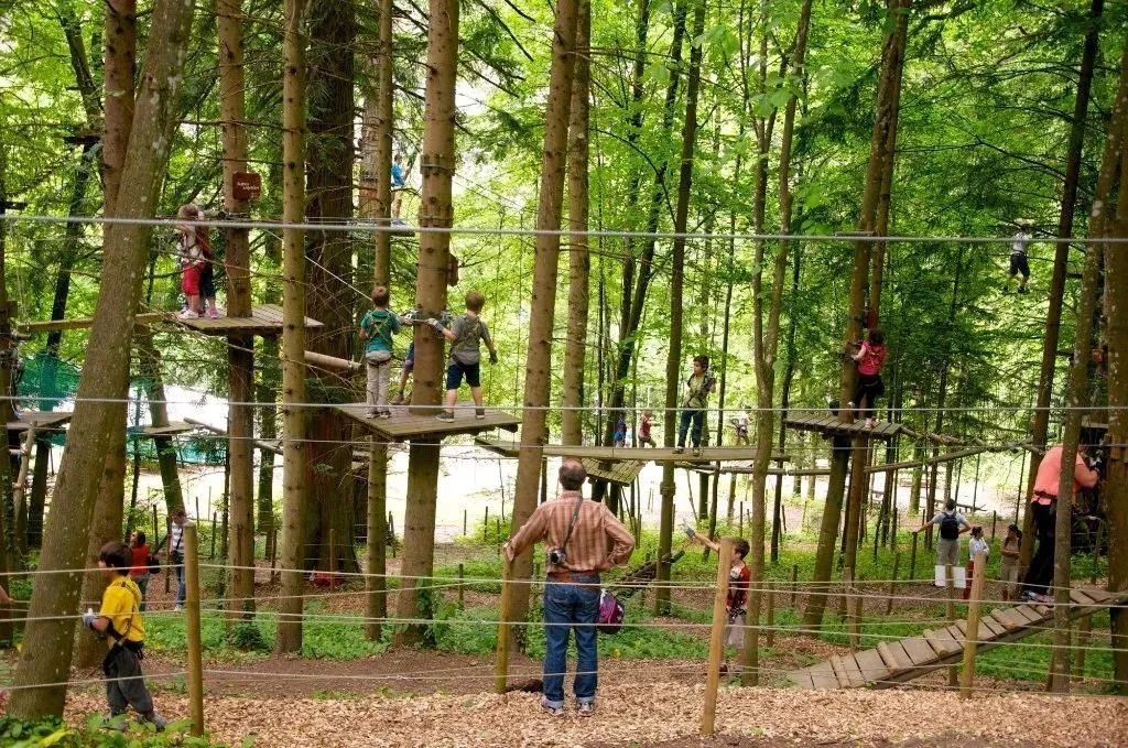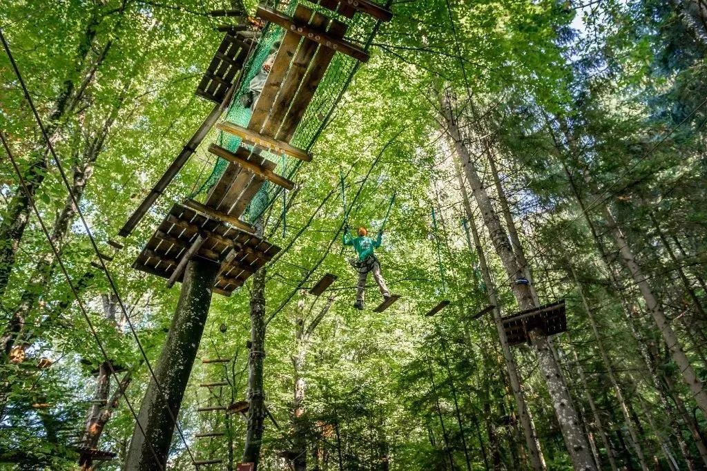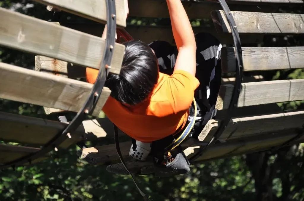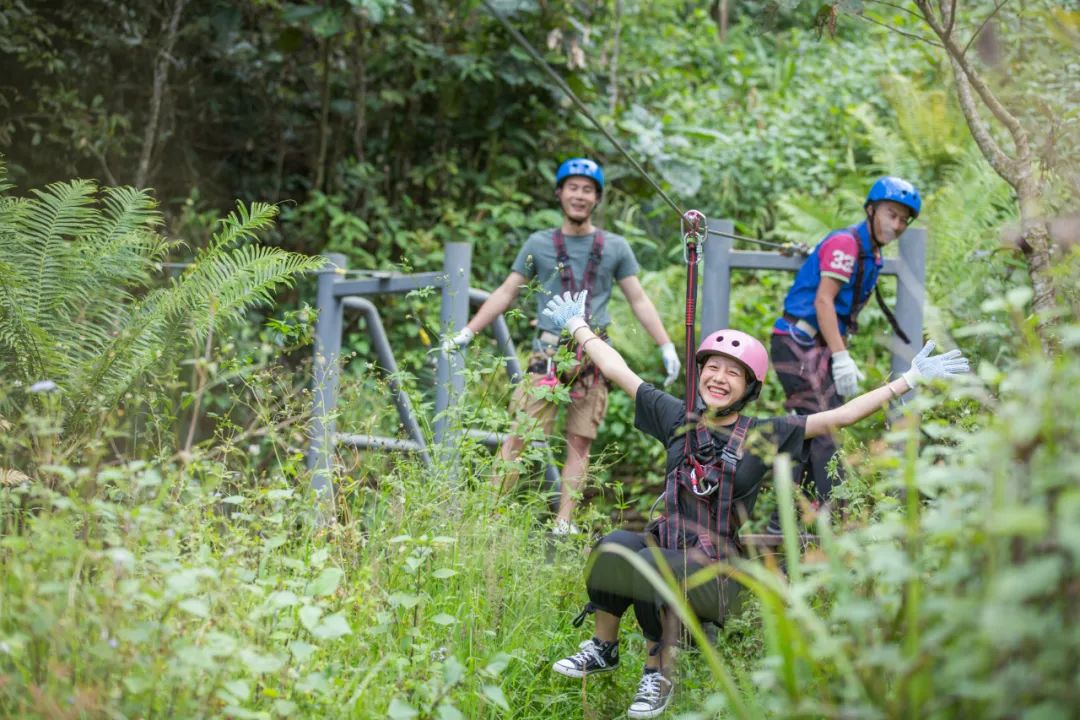 通过爬、跳、滑、跨等刺激动作,体验凌空在竹海里穿梭