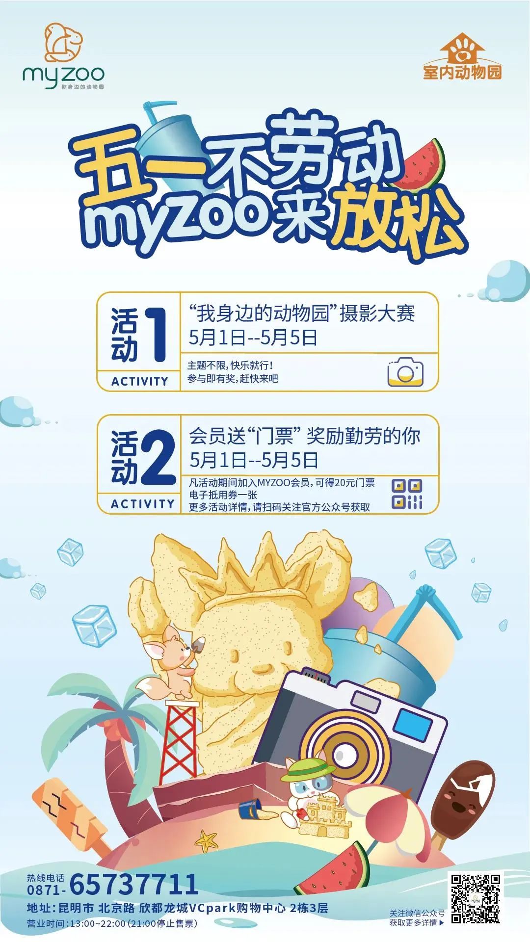 投票结束后,公众微信号将发文公布获奖作品,园区工作人员将在7个工作日内联系获奖者,参与比赛的人员将在当天获得由MYZOO小管家送出的20元门票电子抵用券一张。