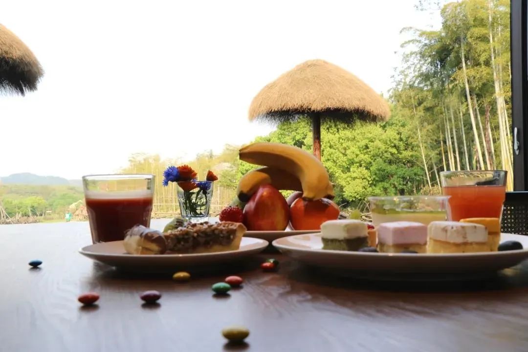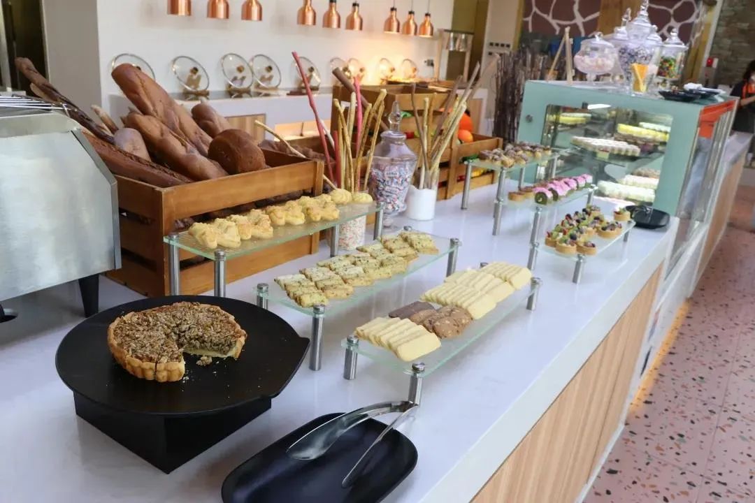 享用琳琅满目的自助甜点盛宴,看长颈鹿优雅的迈着长腿