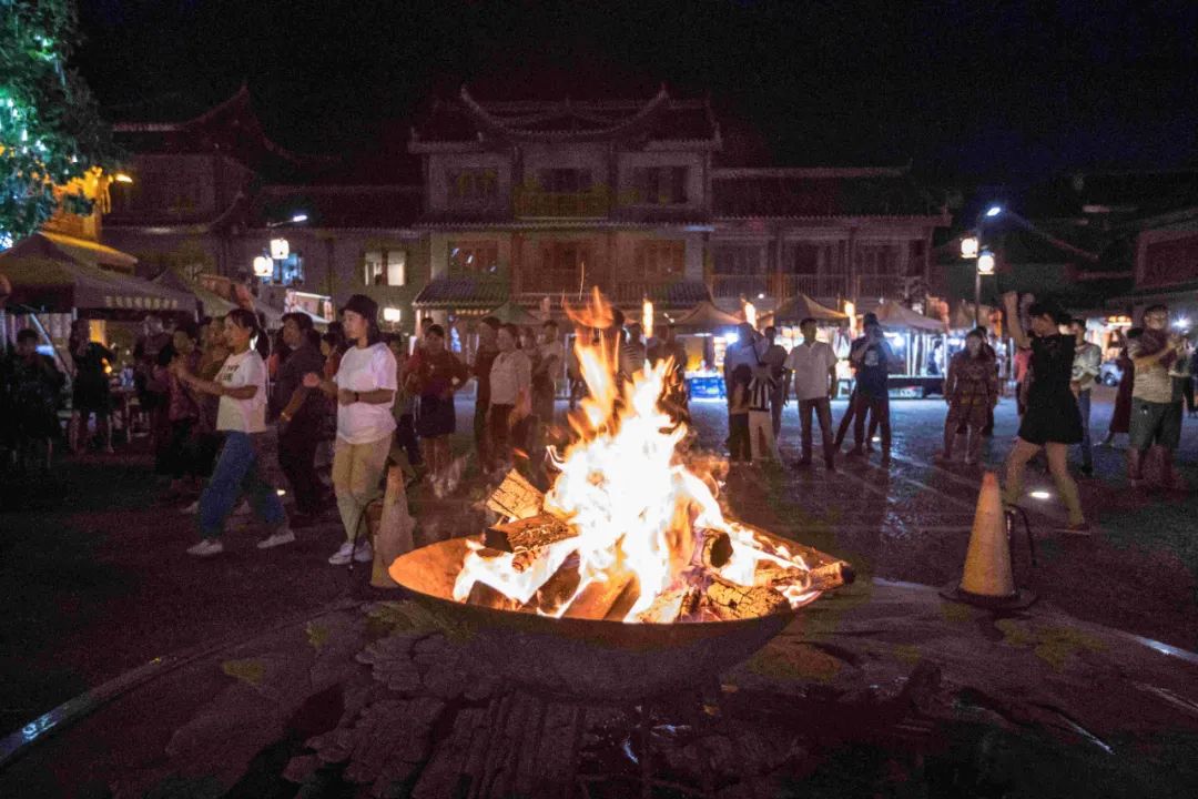而傣景园的楼下比餐桌上却还要热闹。广场中央早已点起的一堆篝火,有各民族的游人围着篝火在傣族音乐的伴奏下翩翩起舞。这样的狂欢让身体和情绪完全放纵开来,在浓浓的傣家氛围中彻底释放自己。