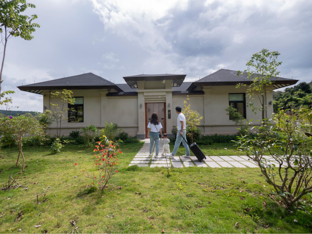 小熊猫庄园目前分为两期项目,一期森林木屋酒店涵盖70间森林木屋,房型分为标准房、大床房、家庭房、套房,二期星月伴山酒店为半山庭院建筑风格,共有15间房,分为大床房、家庭房、泳池套房。房间配套设施一应俱全,无边泳池、按摩泡池、洗衣机、冰箱、按摩休息椅、全自动马桶、浴缸、保险箱等,适宜不同人群旅居。